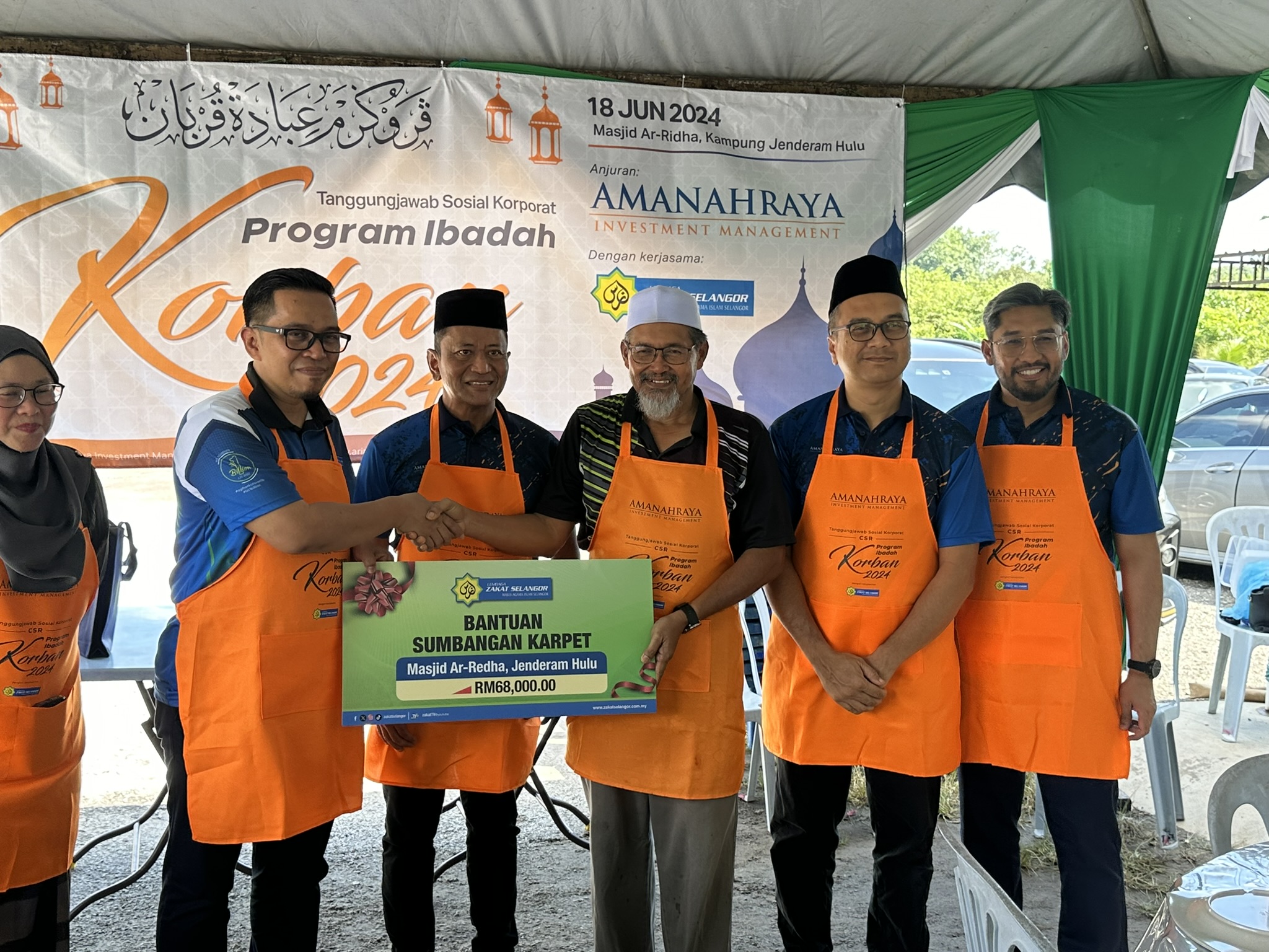 Seramai 140 orang yang terlibat Sempena Program Komuniti Zakat “Program Korban” yang terdiri dari kalangan penduduk dan kariah Masjid Ar-Redha Kg Jenderam Hilir, Dengkil Sepang, AJK Masjid Ar-Redha, kakitangan LZS dan kakitangan Amanah Raya Berhad.